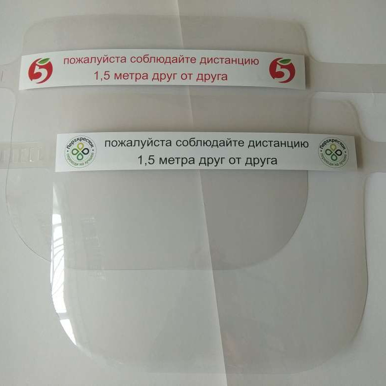 Пластик, из которого изготовлена маска, легкий и гибкий материал, гладкий и прозрачный. Защищает лицо от воздушно-капельных выделений, сохраняя 100% обзора.